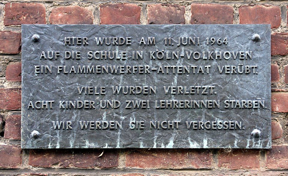 Dvě školy v kolínském okrese byly pojmenovány po zavražděných učitelkách Ursule Kuhrové a Gertrud Bollenrathové. Vážně zraněná učitelka Anna Langhornová, která se jako první postavila útočníkovi a snažila se chránit děti vlastním tělem, byla týden ve smrtelném nebezpečí, nemocnici mohla opustit až po měsíci. Po zotavení se už do školství nevrátila. Její odvaha byla oceněna čestným křížem samotným papežem Pavlem VI. a dále zemskou i německou medailí za zásluhy. Dožila se 93 let a po její smrti v roce 1990 byla jejím jménem pojmenována škola v sousední čtvrti. Další 4 učitelé byli vyznamenáni zemskou medailí a poslední z nich byl oceněn za pomoc při identifikaci znetvořených dětí v nemocnici po samotném útoku. Areál školy byl uzavřen. Všechny budovy, s výjimkou hlavní historické stavby, byly strženy.