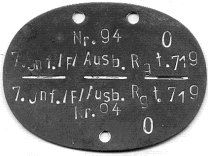 Identifikační štítek příslušníka Wehrmachtu s krevní skupinou 0. Tetování nebylo nutné.