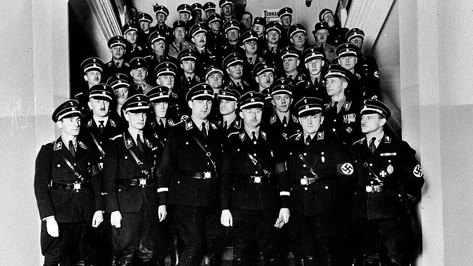 Skupinový portrét SS (SS Führergruppe), fotografie pořízená v „Hnědém domě“, sídle nacistické strany v Mnichově, kolem let 1932–1933.