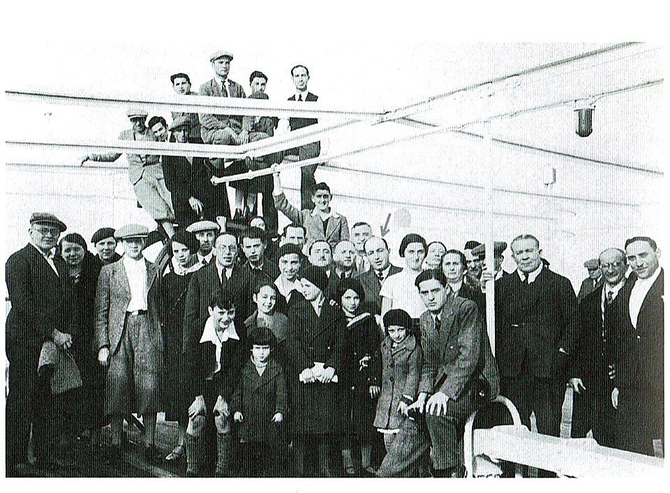 loď s migranty do Palestiny, 1933 (označen německo-židovský právník, podnikatel, historik a publicista Paul Arnsberg)