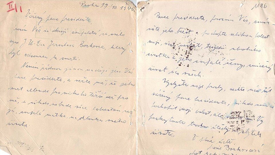 Žádost matky k smrti odsouzeného Jaroslava Borkovce o prezidentskou milost