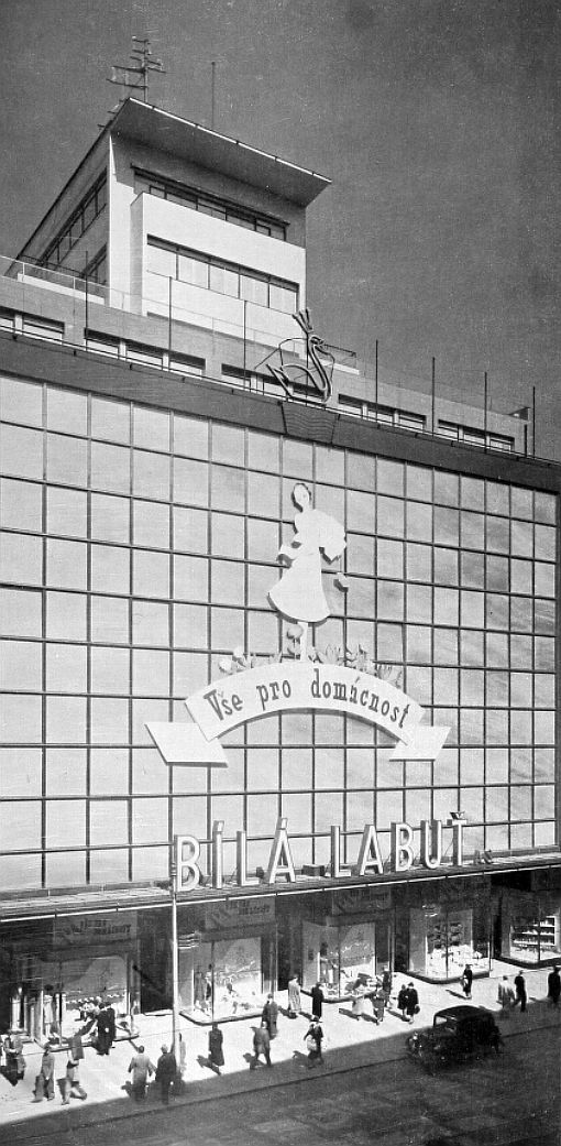 Novotou vonící obchodní dům Bílá labuť otevřel své brány 19. března 1939. Na svou dobu šlo o zjevení – největší a nejmodernější obchodní dům v celém Československu i ve střední Evropě. Ze skleněného průčelí o rozměrech plátna pro katedrálu proudilo do ulice Na Poříčí ostré světlo a lákalo kolemjdoucí dovnitř.
