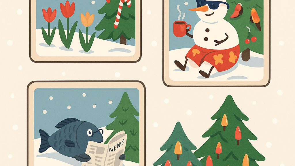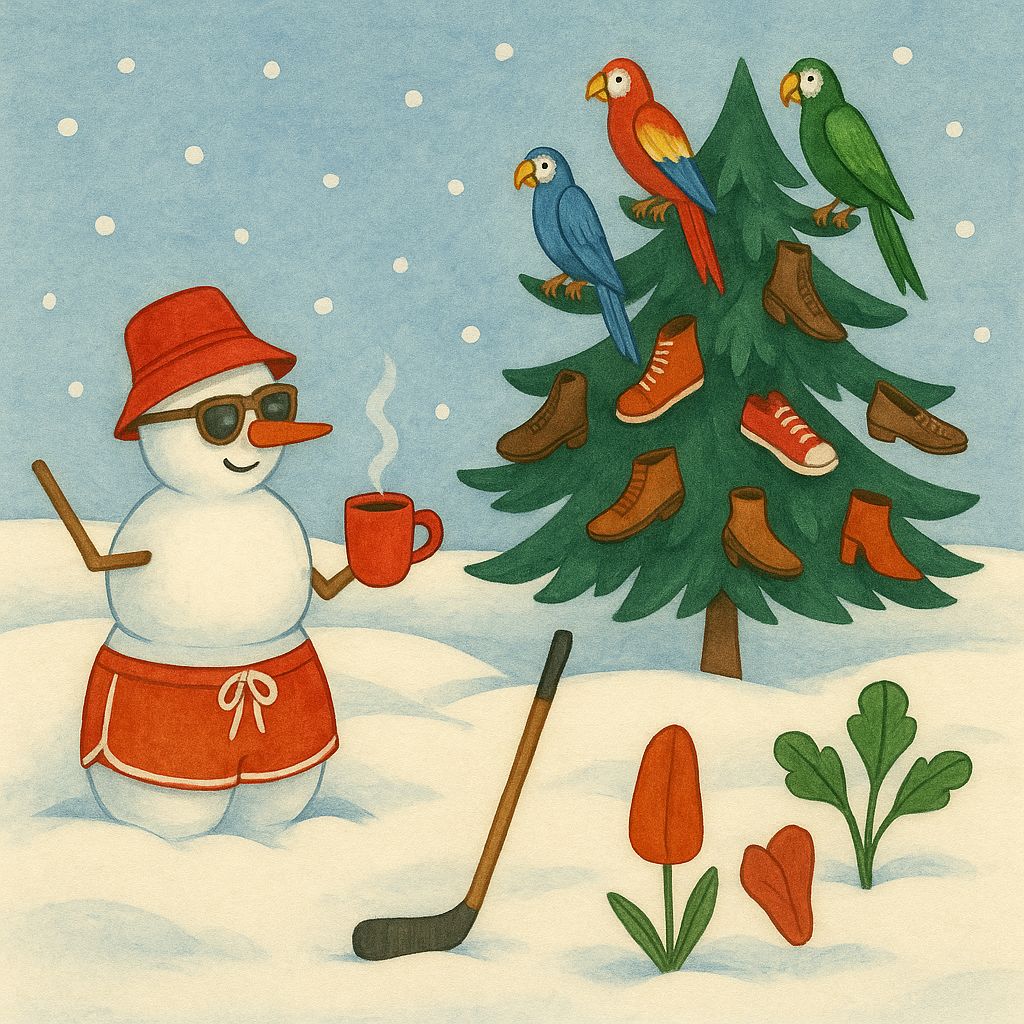 Dnes to vezmeme hravě. Připravila jsem tři obrázky, které si dělají legraci ze zimy i z Vánoc.