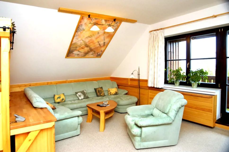 Kateřina s úsměvem říká, že se s Lucií přetahují o to, která z nich si na ni sedne jako první a získá nejlepší výhled na televizi. Prostor má pro ni zvláštní energii. Líbí se jí kombinace barev i různé druhy dřeva, které celý interiér zjemňují. Kouzelnou atmosféru doplňuje možnost zatopit v kamnech. I když celý objekt vytápí tepelné čerpadlo, praskající dřevo vytváří večery, které připomínají staré časy. Kamna navíc působí i esteticky a zapadají do horského prostředí.