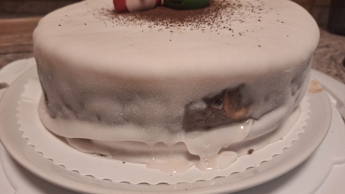 Jakmile jsem otevřela lednici, abych z ní vytáhla potraviny ke snídani, všimla jsem si, že z dortu, který jsem večer uskladnila do velké plastové dózy určené právě na dort, začíná na bocích mizet bílý marcipán, jako by odtával sníh po oblevě. Ani ve snu by mě nenapadlo, že se něco takového může stát s dortem od profíků. Do oslavy zbývalo ještě 9 hodin a dalo se čekat, že za takovou dobu „zmizí“ ještě kus potahu a dort nebude ani náhodou výstavní. A přeci jen, dcera slaví deset jen jednou a dort by měl vydržet alespoň do zapálení svíček. Nechci, aby musela vzpomínat na to, že měla roztečený dort. I když tu vzpomínku už z naší mysli stejně nevymažeme.