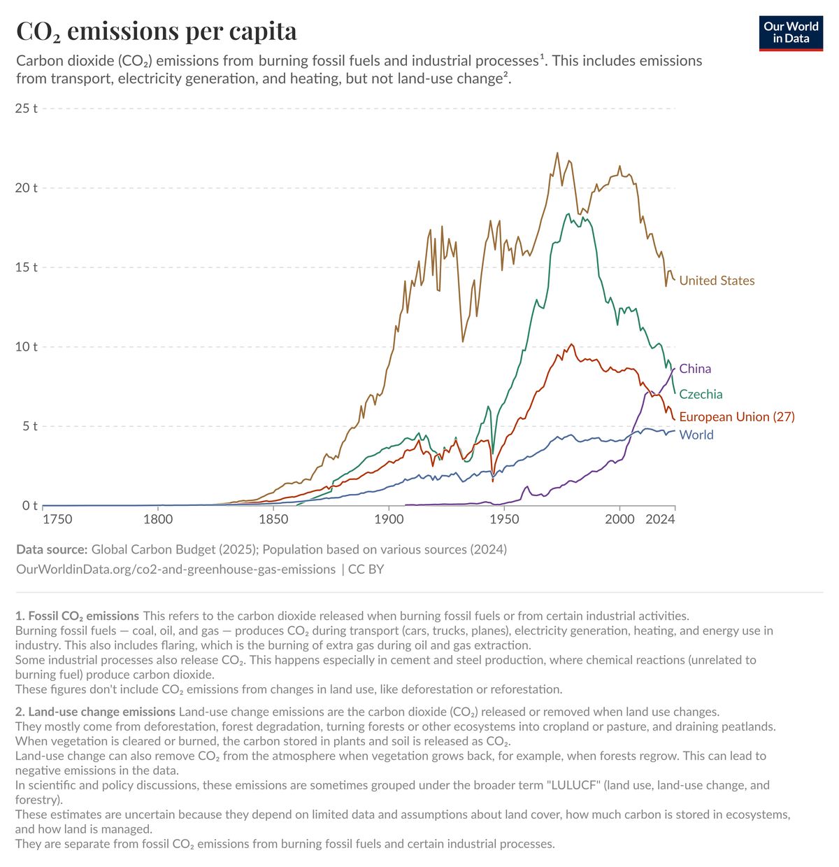 Čína zároveň ale masivně investuje do obnovitelných zdrojů – více než polovina světově instalované nové kapacity solárních a větrných elektráren připadá právě na ni. Klimatická změna je globální problém: nezáleží, zda CO₂ uniká v Číně nebo v Evropě, rozhoduje celkový objem emisí. Argument o „největším současném znečišťovateli“ proto zkresluje realitu, pokud se používá k odmítání evropské akce.