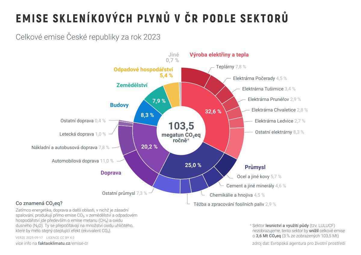 Emise skleníkových plynů v ČR podle sektorů (2023)