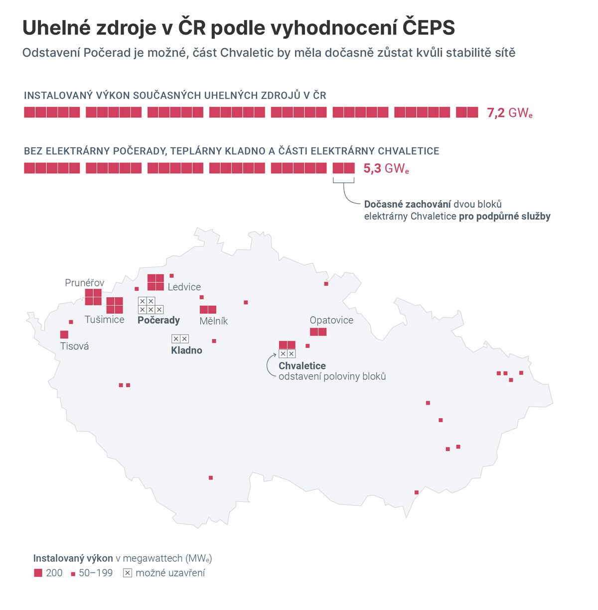 Uhelné zdroje v ČR podle vyhodnocení ČEPS