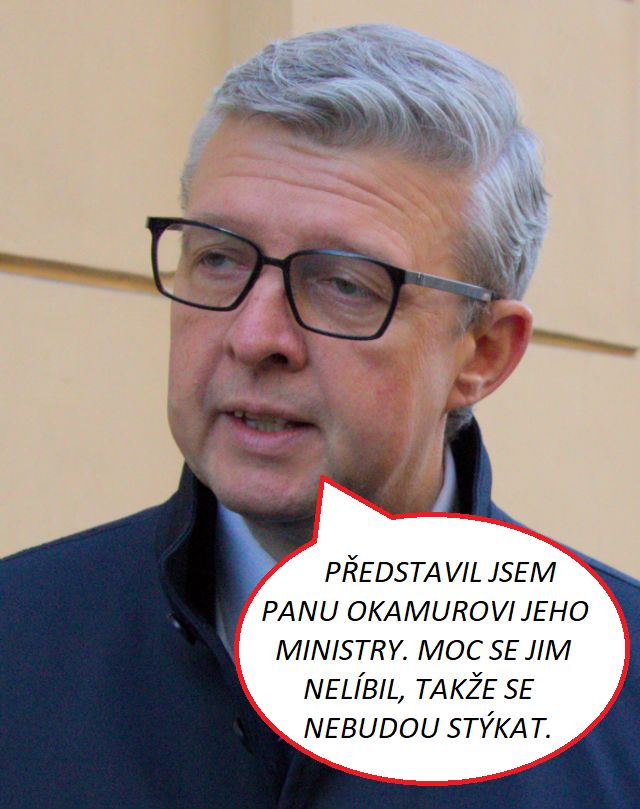 Tomiovi Okamurovi to nevadí. Vždyť ani nemá žádné lidi, které by do vlády dosadil. Na rozdíl od Filipa Turka má dostatek sebereflexe, aby si připustil, že na ministrování nemá. Také ukázal, že jeho politický program je ještě tvárnější, než ten Babišův — už stihl zradit své voliče a vzdát se myšlenky na referendum o EU. Vypadá to, že plánuje vládu podporovat ze sněmovny a věnovat se především tomu, co umí nejlíp: zákulisním kšeftům a líbivému tlachání.