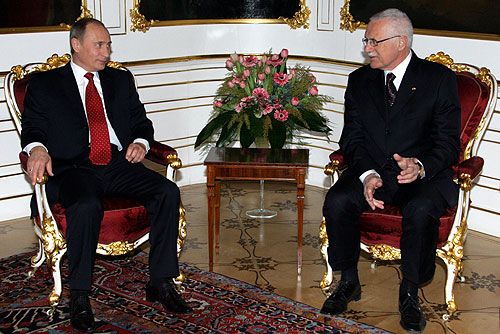 Konspirační teorie vysvětlují Klausův názorový vývoj tím, že je agent KGB. Já věřím, že je prostě vděčný za to, že ho Rusové uznávají a dávají mu prostor. (Foto ze setkání prezidentů v roce 2006.)
