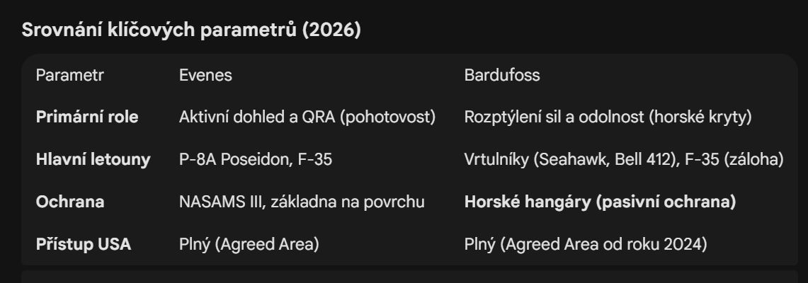 - Od roku 2022 prošly v rámci spolupráce s USA masivní modernizací i norské letecké základny Evenes a Bardufoss. Na základně Bardufoss byly např. v červnu 2024 znovu po 40 letech konzervace aktivovány (pro letouny F-35) hangáry vytesané hluboko do úbočí hor.