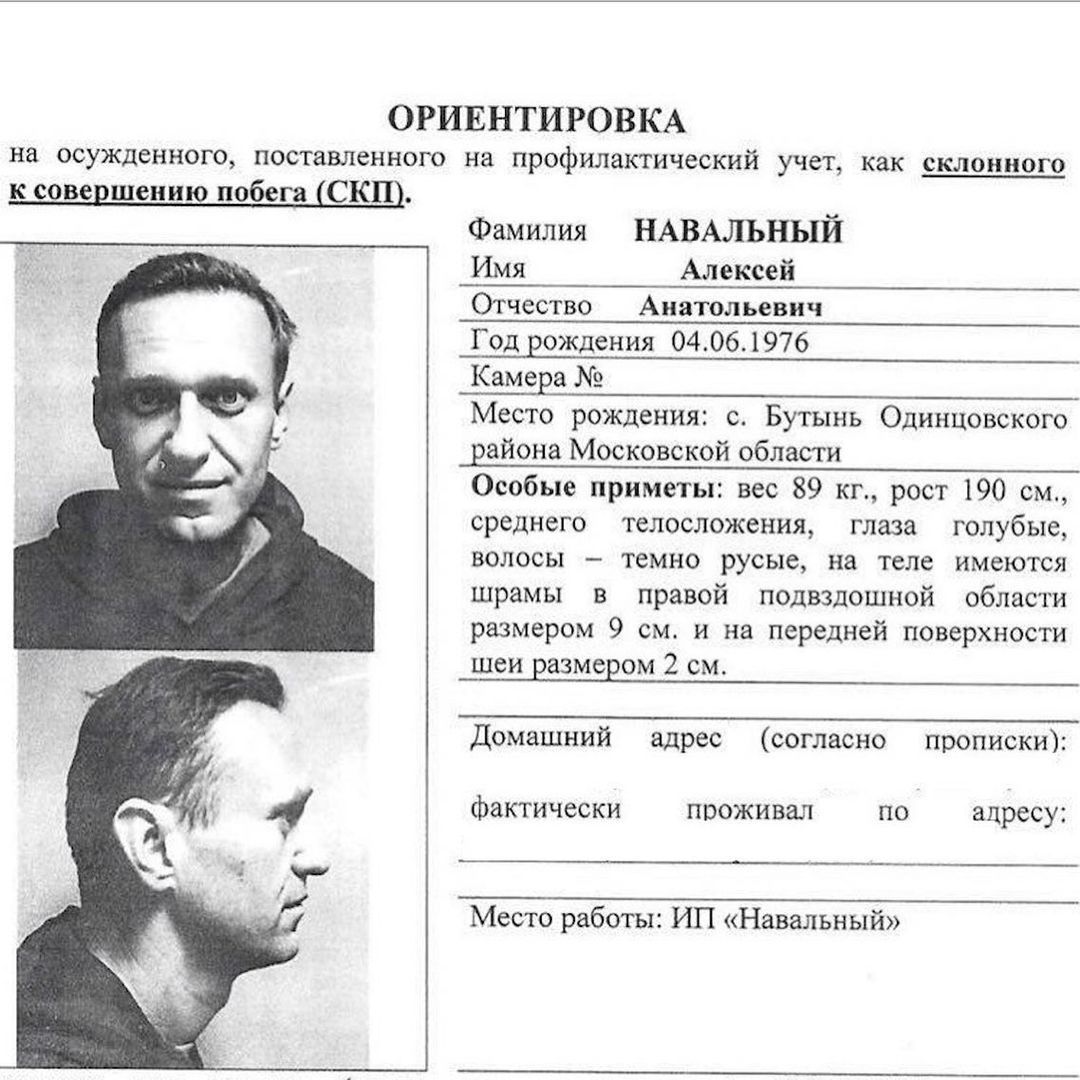 Vězeňská registrační karta Alekseje Navalného