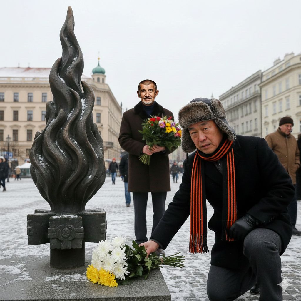 A nic neilustruje lépe morální marast a mentální úroveň naší současné společnosti, než fotografie oportunistického agrobarona a někdejšího agenta StB a japonského protagonisty ruské páté kolony pokládajících kytice u památníku Jana Palacha, který před 57 lety zemřel na protest proti ruské okupaci, kolaboraci s loutkovým režimem dosazeným okupanty a kapitulantství, které dnes hlásá právě samotný předseda českého parlamentu v souvislosti se současnou ruskou genocidou na Ukrajině.