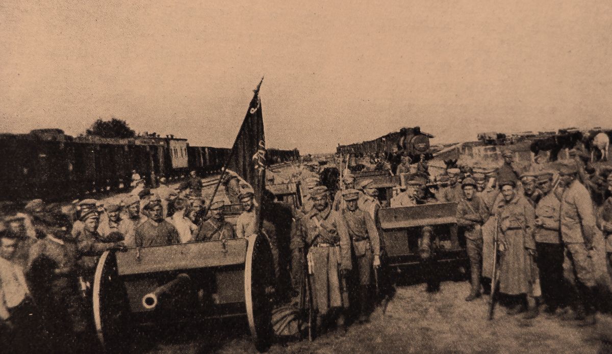 Legionáři s děly ukořistěnými v Marjanovce