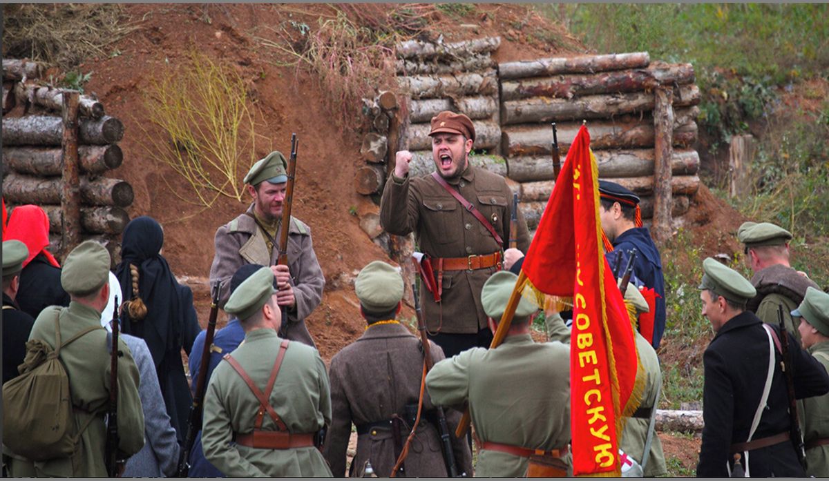 Rekonstrukce jakékoliv bitvy občanské války členy klubů vojenské historie většinou vyzní jako oslava hrdinství bolševických bojovníků