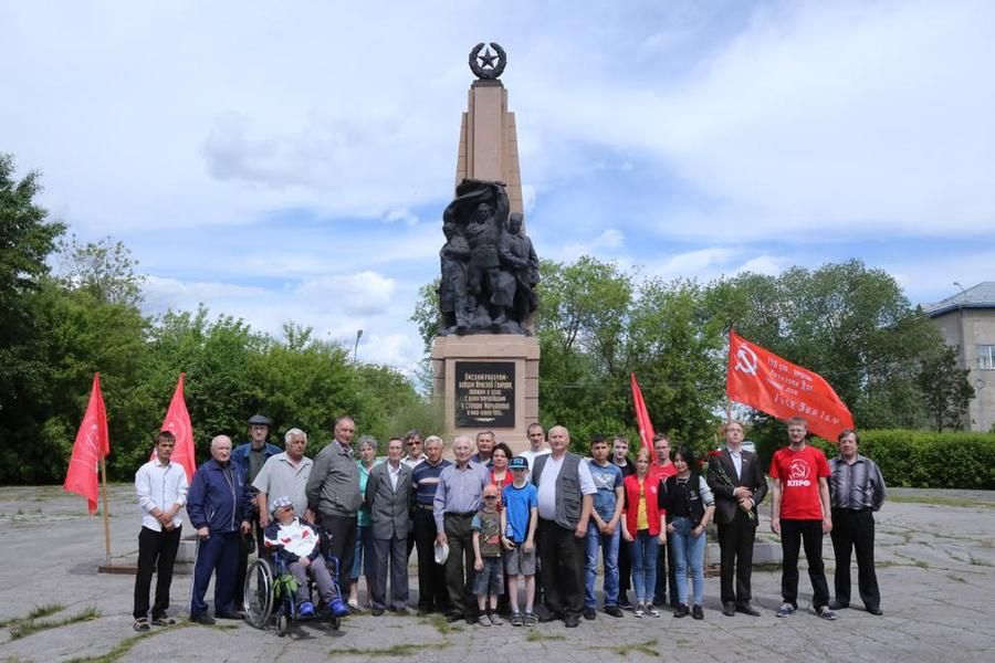 Omští neostalinisté u pomníku rudogvardějcům - Marjanovka