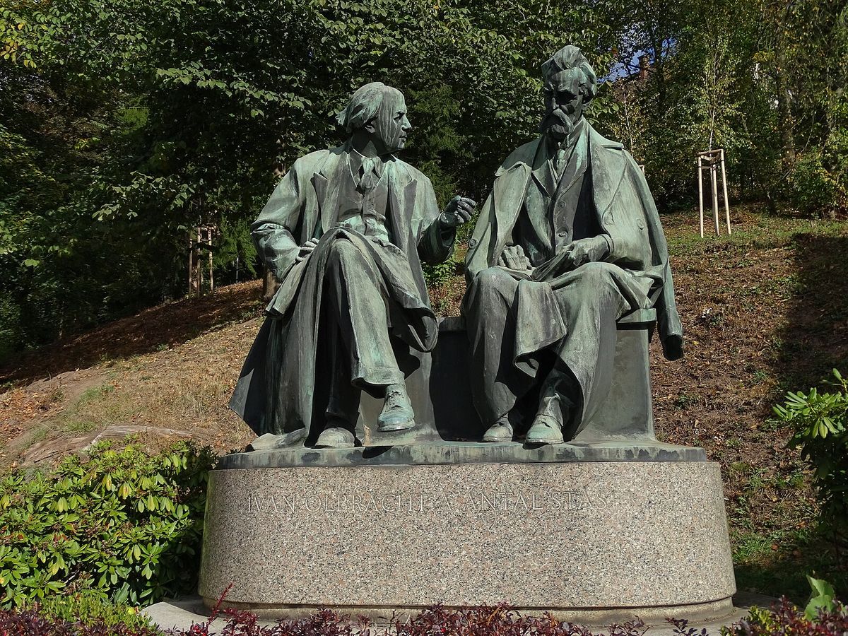 Otec a syn – bronzové sousoší spisovatelů Antala Staška a Ivana Olbrachta z roku 1960 od sochaře prof. Josefa Malejovského. Semily,Bítouchovská,