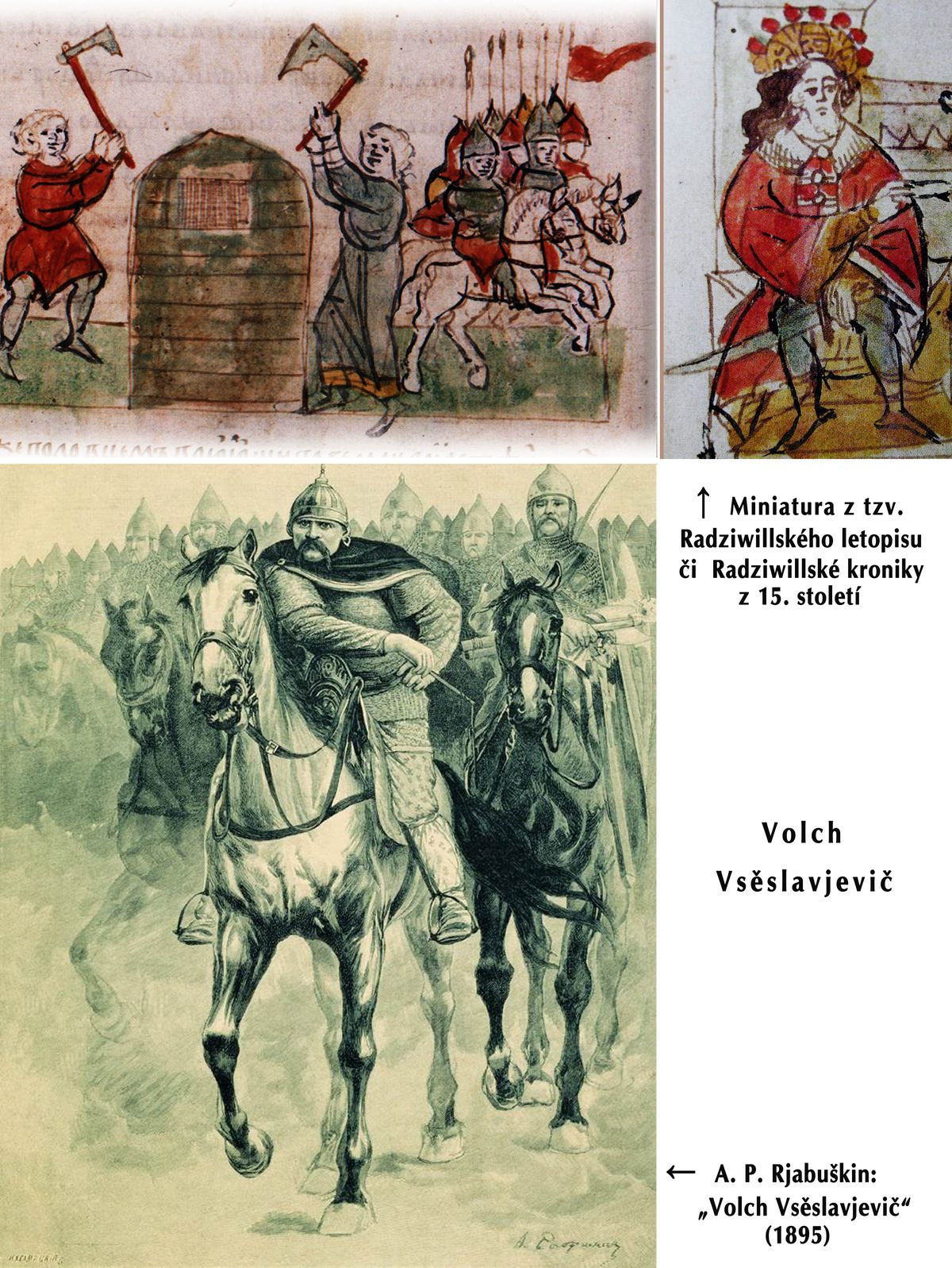 Ale také o čaroději Volchu Vsěslavjeviči, synovi kněžny Marfy a Ohnivého hada či draka [6], jehož předobrazem měl být snad „vlkodlačí“ kníže z Polocku Vsěslav Čaroděj (c. 1029-1101) z mocného rodu Rurikovců, o jehož zvláštních schopnostech se zmiňuje i spis z počátku 12. století Pověst dávných let (Povesť vremennych let) neboli Nestorův letopis, považovaný za nejstarší z dochovaných ruských kronik.