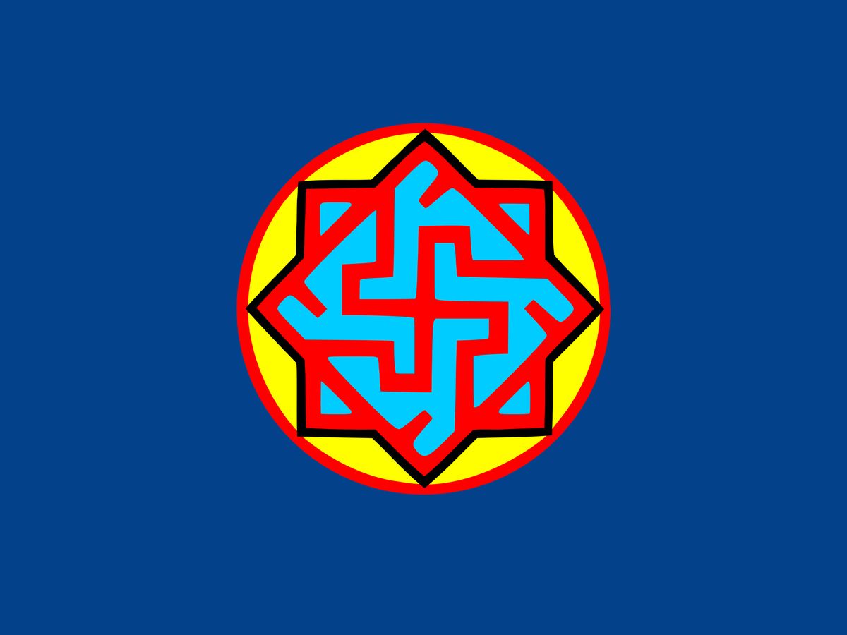 Slovanský svaz používá vlajku s motivem slovanské svastiky, tzv. kolovratu / svargy, na rudém pozadí. Noví adepti jsou do řad této militantní sekty přijímáni v rámci mystických obřadů, připomínajících pohanské staroslovanské či germánské rituály (ve stylu okultních obřadů na řádových hradech SS [15]).