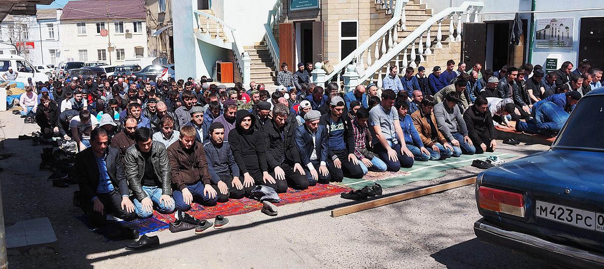 Náboženský obřad: páteční veřejné muslimské modlitby, Machačkala (Dagestán)