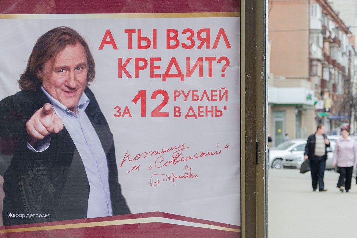 Depardieu na reklamním plakátu, v uvedených souvislostech vyznívá tato reklama jako špatný vtip.