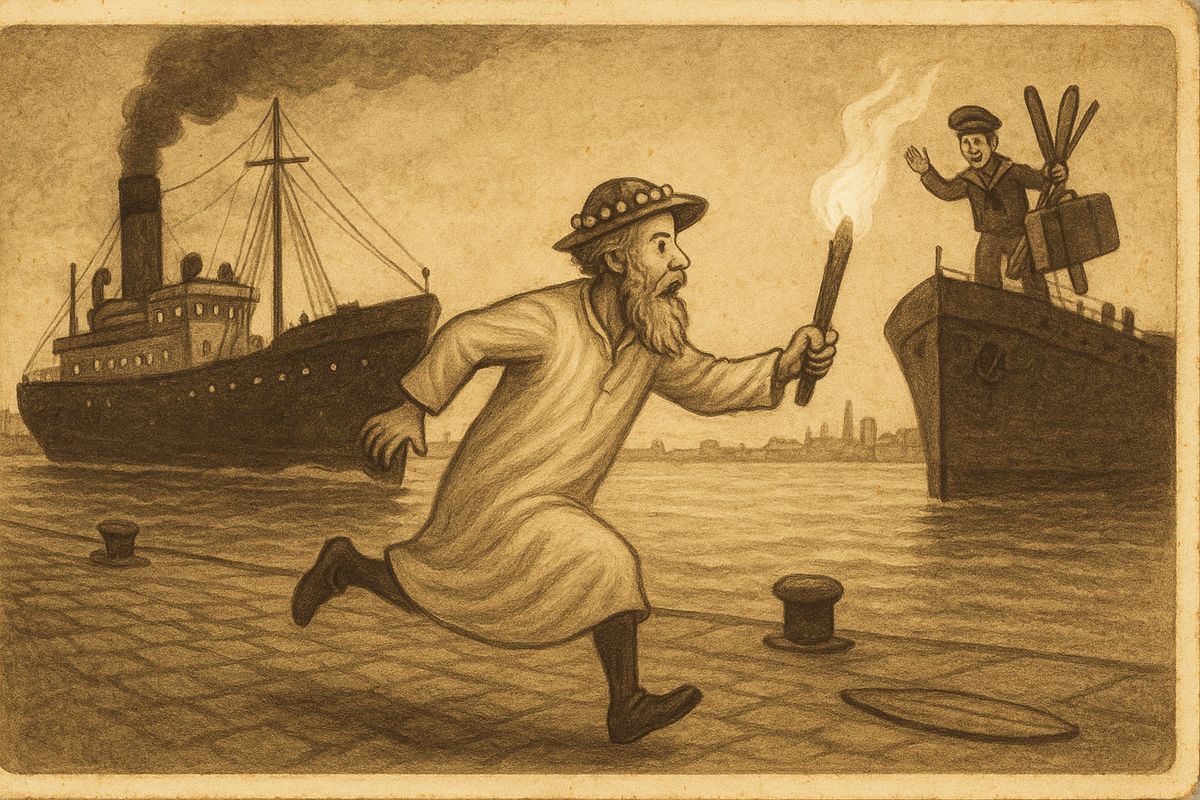 Cesta probíhala jako po drátkách až do chvíle, kdy Cimrman vystoupil v předposlední zastávce v Austrálskem Perthu, jestli by tam neměli vosk na jeho lyže a také se chtěl občerstvit normálním, nikoliv námořním jídlem. Náhoda či osud tomu chtěl, že mu loď i s jeho věcmi ujela. Naštěstí se pak měla vracet po stejné trase, tak se Cimrman rozhodl zde počkat na její návrat.
