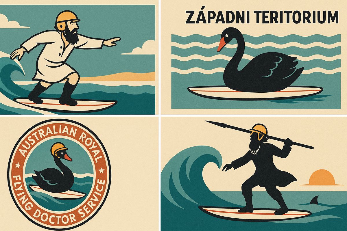 Cimrmanův pobyt v Perthu by zapadl bez povšimnutí v propadlišti dějin, kdyby by o pár let později v Perthu neřešili nový znak Západního teritoria. Mezi návrhy se omylem zamotala karikatura Járy Cimrmana z doby jeho pobytu, na které byl znázorněn jako surfující černá labuť s bezpečnostní helmou, která má dnes sice význam nečekané zprávy, která bývá počátkem ekonomické krize, ale v tomto případě to má význam spíše opačný, jinak by se černá labuť nedostala do znaku Západního teritoria. V Australské záchranné lékařské službě, kterou v Alice Springs založil právě Cimrman, šli ještě dál, jinak si ani nejde vysvětlit, že mají ve znaku černou labuť v helmě, jakou při surfování nosil mistr. A tak na rukávu uniforem hrdě nosí vzpomínku na Járu Cimrmana. Druhou kresbou, která se téměř dostala do finále, byla silueta Járy Cimrmana stojícího na surfu kterak oštěpem loví žraloky.