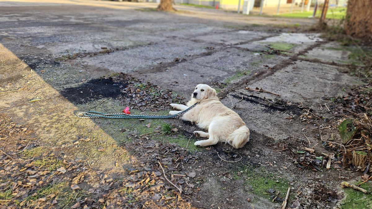 Ošetřovatel mu nasadí vodítko a jdeme. Tedy… chtěla jsem jít. Jakmile se totiž za námi zavřou vrata útulku, to hravé a veselé štěně si lehne a odmítá jít. Je to, jako bych řekla "štronzo"- zaklínadlo z dětské hry. Po mém přemlouvání udělá pár kroků, dá mi pac a zase si lehne. Ujdeme takhle několik metrů. Je mi zima, tak se vracíme.