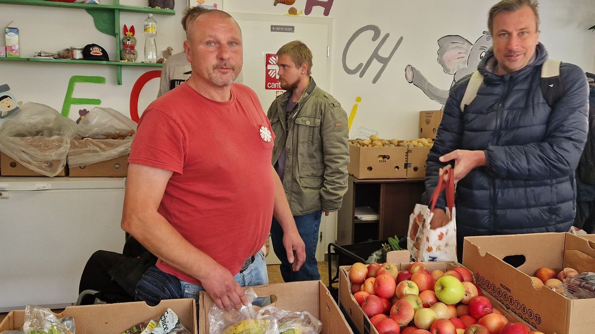 Pomáhat do charity chodí i lidé, kteří zůstávají na ulici – jako jednašedesátiletý Mára. Bez střechy nad hlavou žije už 13 let, stejně jako Pavel celoročně ve stanu. V charitě začal pomáhat před víc než rokem. Když se vydávají potraviny, stojí u dveří jako vrátný a vede evidenci.