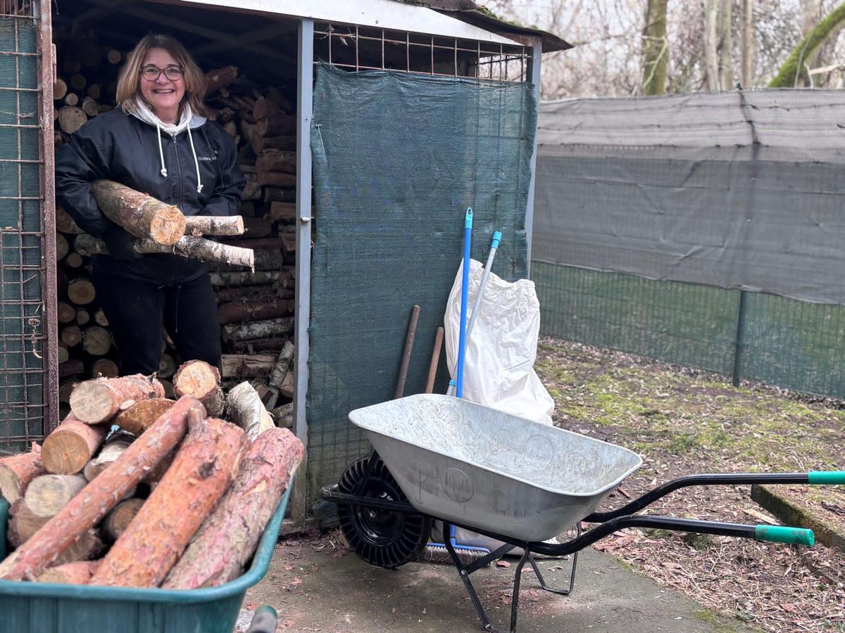 Na zahradě tři chlapi řezali dřevo a já pomáhala převážet suchá polena do sklepa. S kolečkem jsem se otočila asi dvacetkrát. V hlavě mi zněla známá písnička: Dělání, dělání, všechny smutky zahání, dělání, dělání je lék. Právě na takové dny se dobrovolníci hodí víc než kdy jindy.