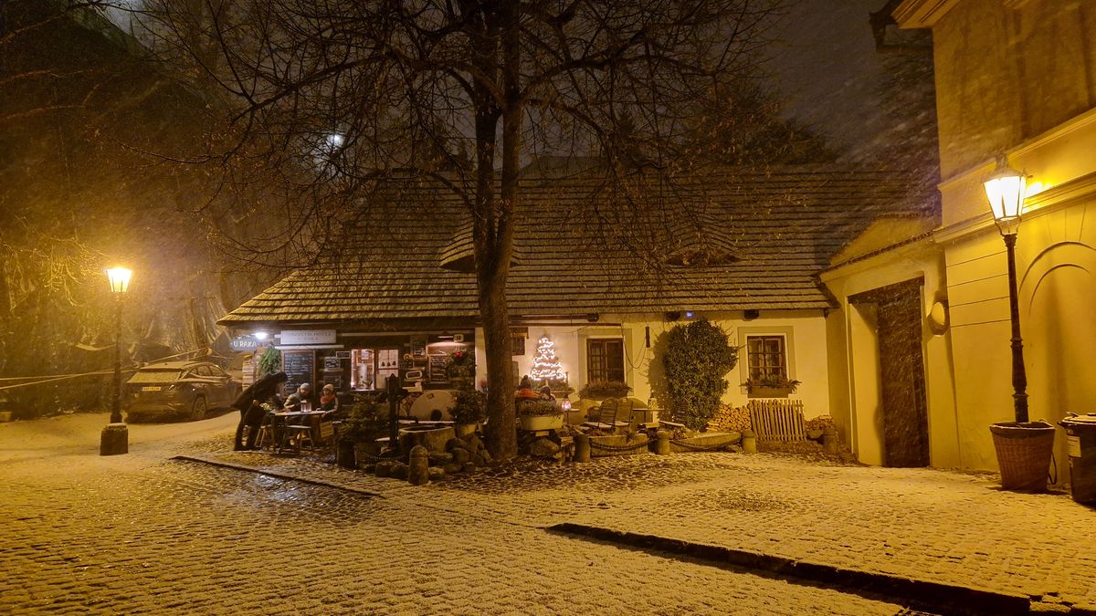 Husté sněžení dodává Novému Světu pohádkovou atmosféru. Kristýna vypráví o Tychonovi Brahe, který bydlel v domě U Zlatého noha. Hvězdnou oblohu chodil pozorovat do nedalekého letohrádku královny Anny – nejspíš první pražské observatoře.