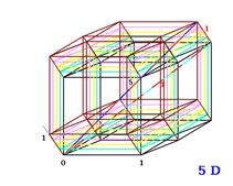 Úhlopříčka 4D (4) ve 4D krychli a 5D (5) v 5D krychli