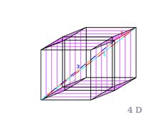 Ve čtvrtém prostorovém rozměru má každý 3D objem samostatnou existenci, a přitom každý bod objemu sousedí s odpovídajícími body obou sousedních objemů.