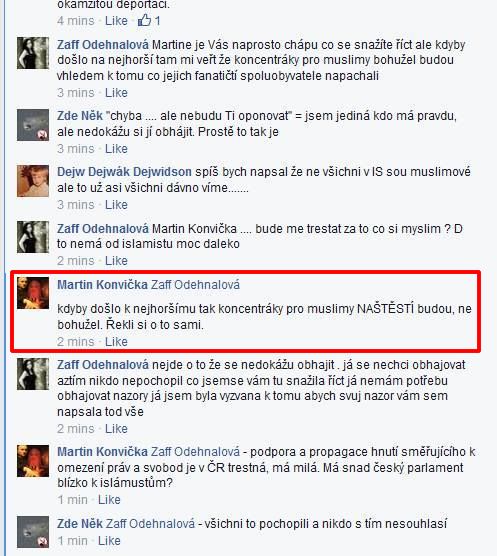 „Kdyby došlo k nejhoršímu, koncentráky pro muslimy naštěstí budou, ne bohužel.“