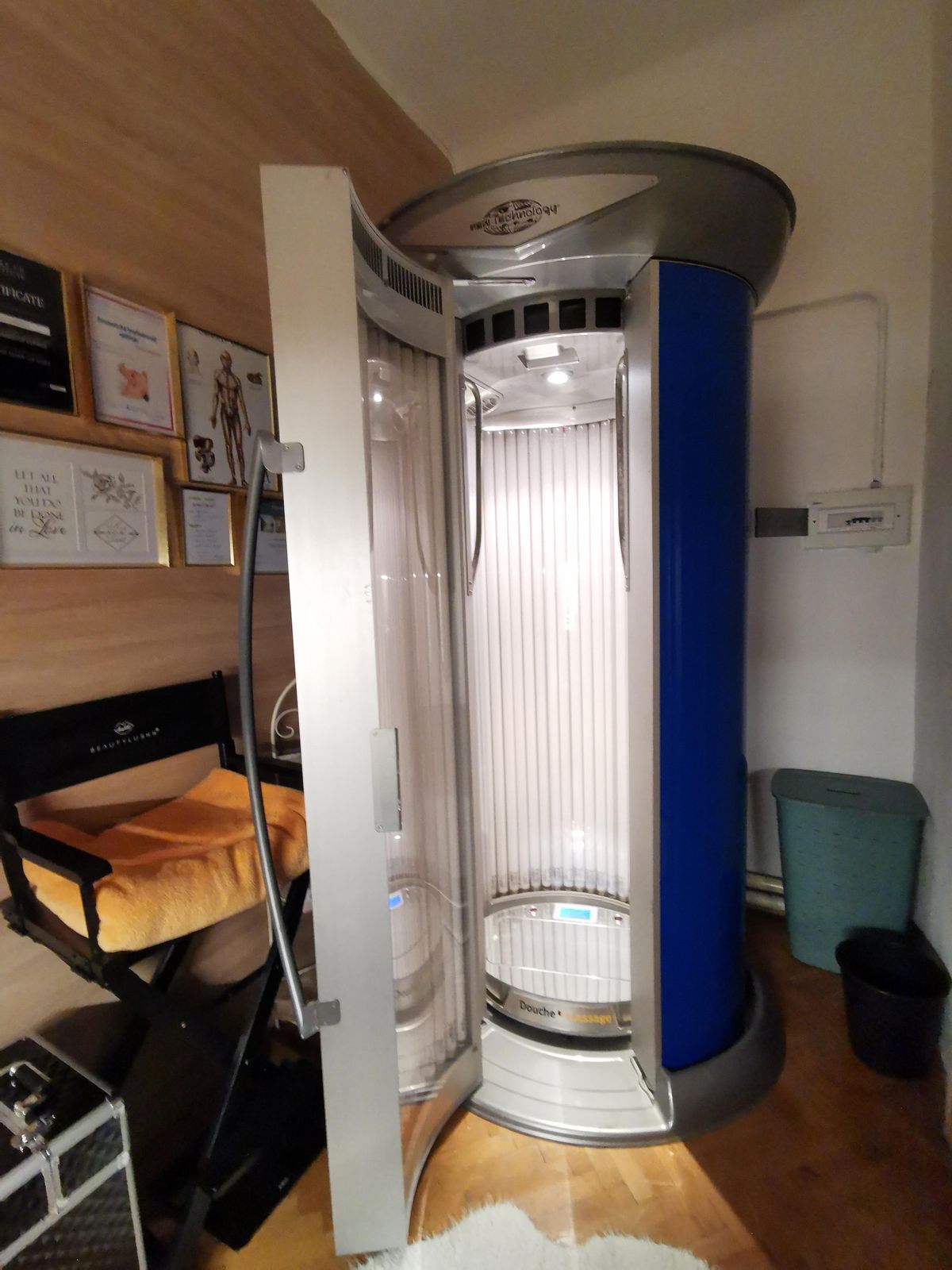 V kolagenáriu je také plošina, na které si můžete zapnout různé druhy vibrací pro spalování tuků, zpevnění těla a zlepšení lymfatického oběhu.