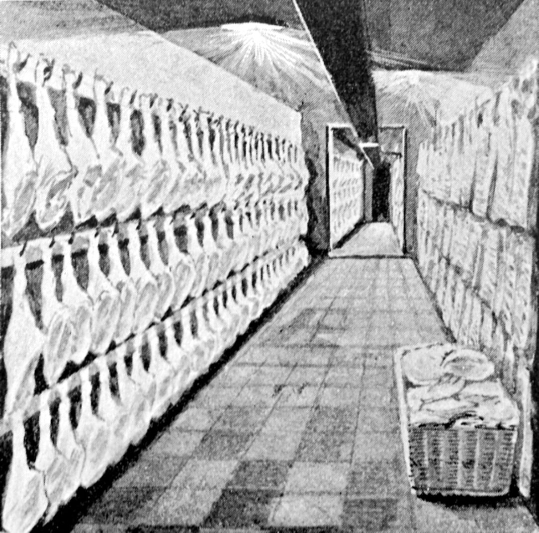 Udírna šunky v Chmelově uzenářském závodě, 1898