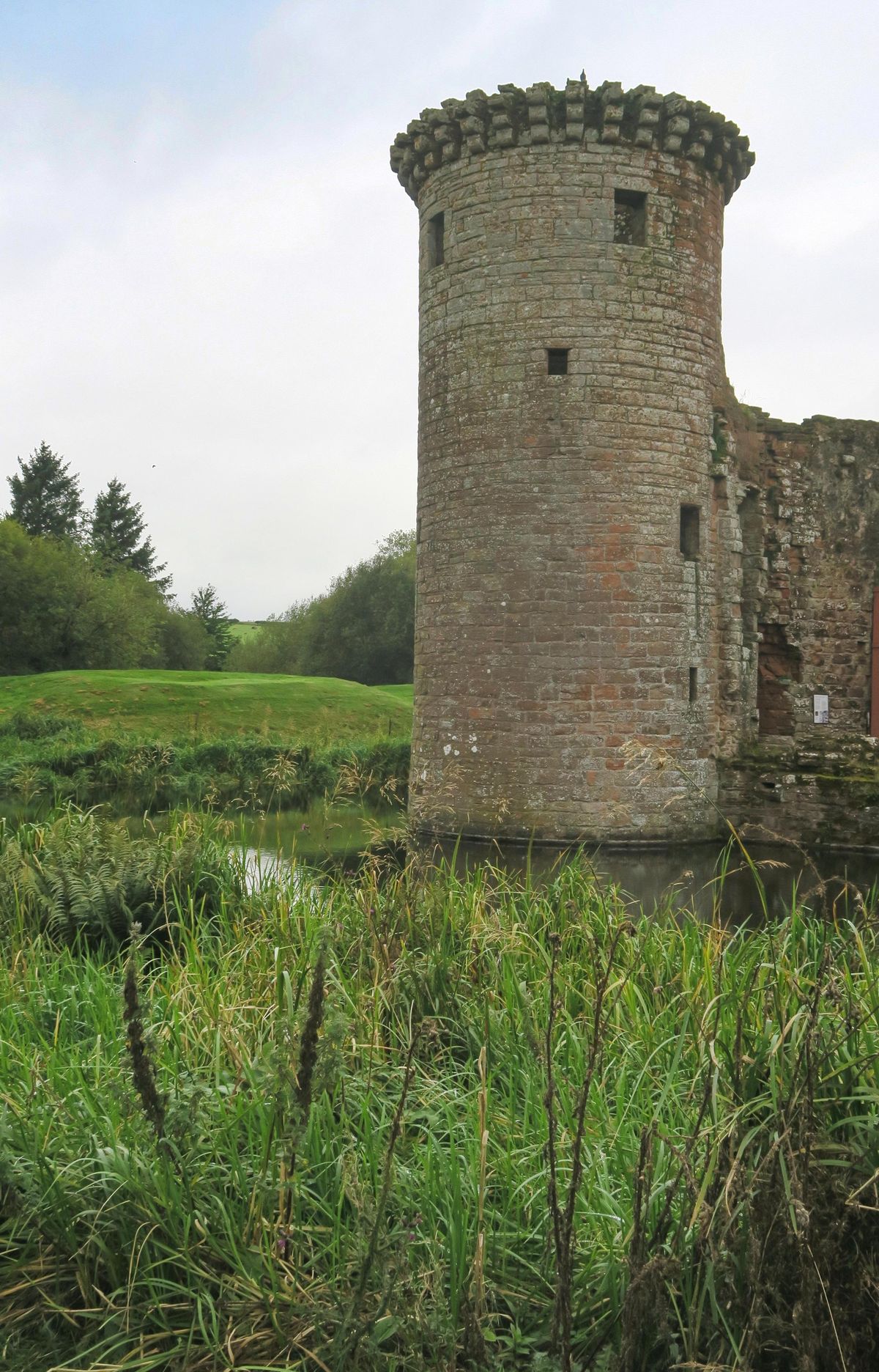 Trochu pohádkový vzhled dodává hradu i vodní příkop a zvláštní zabarvení do červeno-zelena, získané díky červenému pískovci a silné vlhkosti, stoupající z vody. Ano, vlhkost je zde opravdu silná, kdo ví, jak se s ní „popasovalo“ hradní panstvo. Snad pomocí značného množství krbů, které turista uvnitř objeví především v působivém Nithsdale Lodging se zvláštní renesanční fasádou a kamennými řezbami. Do této zde poněkud nečekané stavby se pustil Robert Maxwell, 1. hrabě z Nithsdale, snad ve snaze zvýraznit nově nabytou šlechtickou hodnost a s předpokladem delšího mírového období. V tom se sir Robert bohužel zmýlil. Elegantní třípatrové sídlo s velkými okny a kamennými řezbami sloužilo svému určení jen okamžik. Od dokončení „apartmánů“ v roce 1634 uplynulo pouhých šest let do konečné zkázy. Po třináctitýdenním obléhání zdolalo covenanterské vojsko hrad a následně jej ponechalo na pospas živlům.