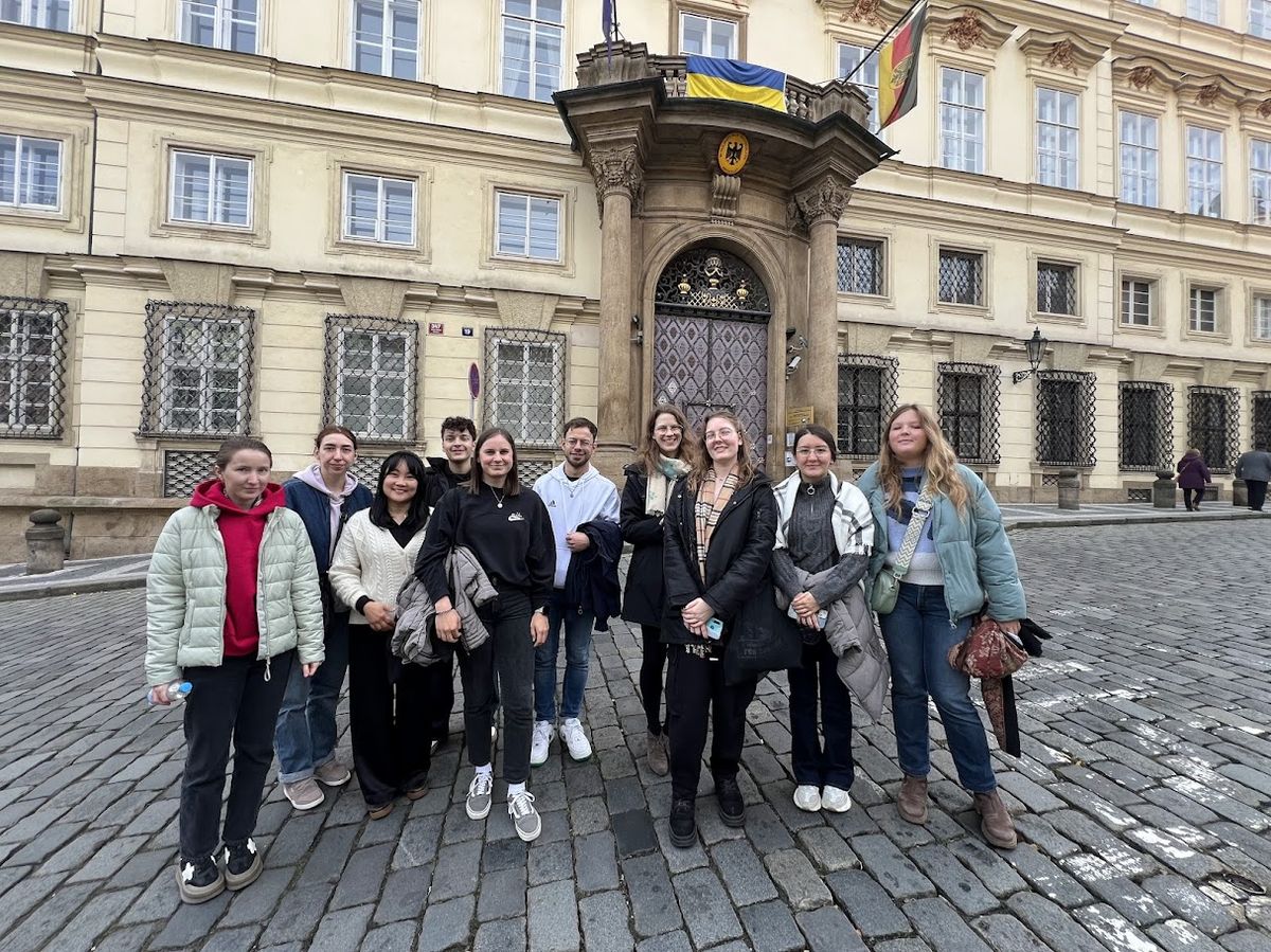 Prohlídka pokračovala kolem americké ambasády v paláci Schönborn. Naše kroky vedly také k německé ambasádě v paláci Lobkowicz, která se v roce 1989 stala svědkem jednoho z nejdojemnějších momentů moderních dějin, kdy zde tisíce východoněmeckých uprchlíků našly útočiště a ministr zahraničí Hans-Dietrich Genscher jim oznámil mimořádné povolení k odjezdu, krok, jenž předznamenal německé sjednocení.