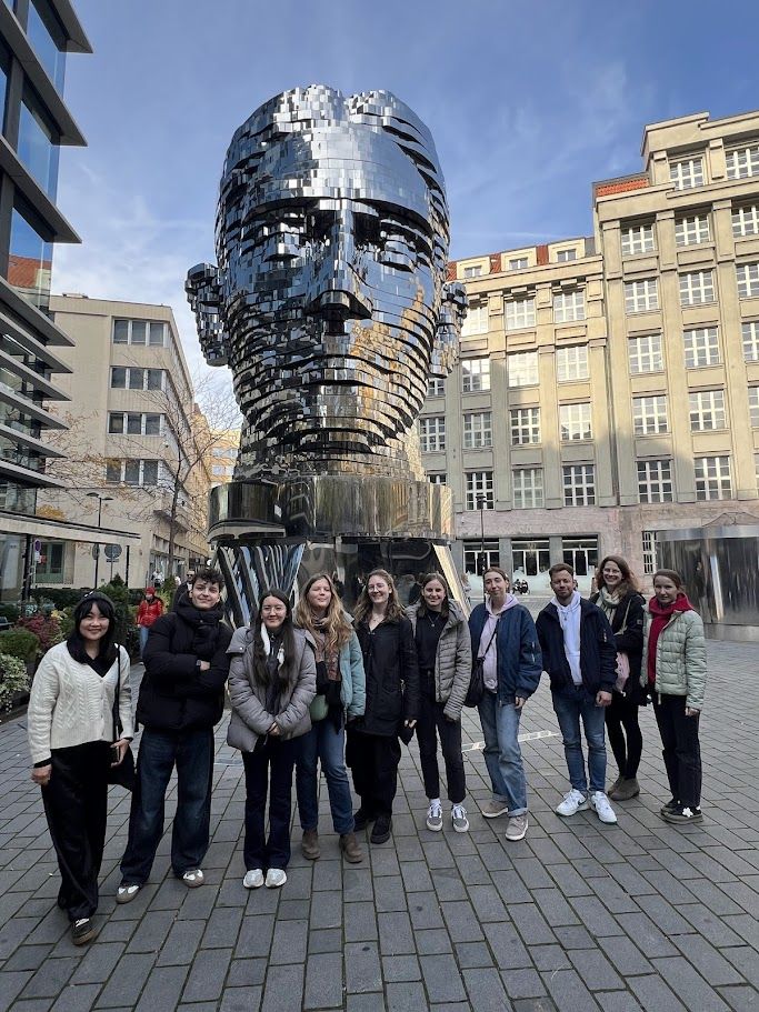 Závěr prohlídky patřil kinetické soše Kafkova hlava od Davida Černého, otočnému portrétu, který metaforicky zobrazuje rozdvojenost a vnitřní rozpor Franze Kafky. Kafka, německy píšící židovský spisovatel z Prahy, zůstává dodnes jednou z nejvýraznějších a nejživějších postav pražské kulturní paměti.