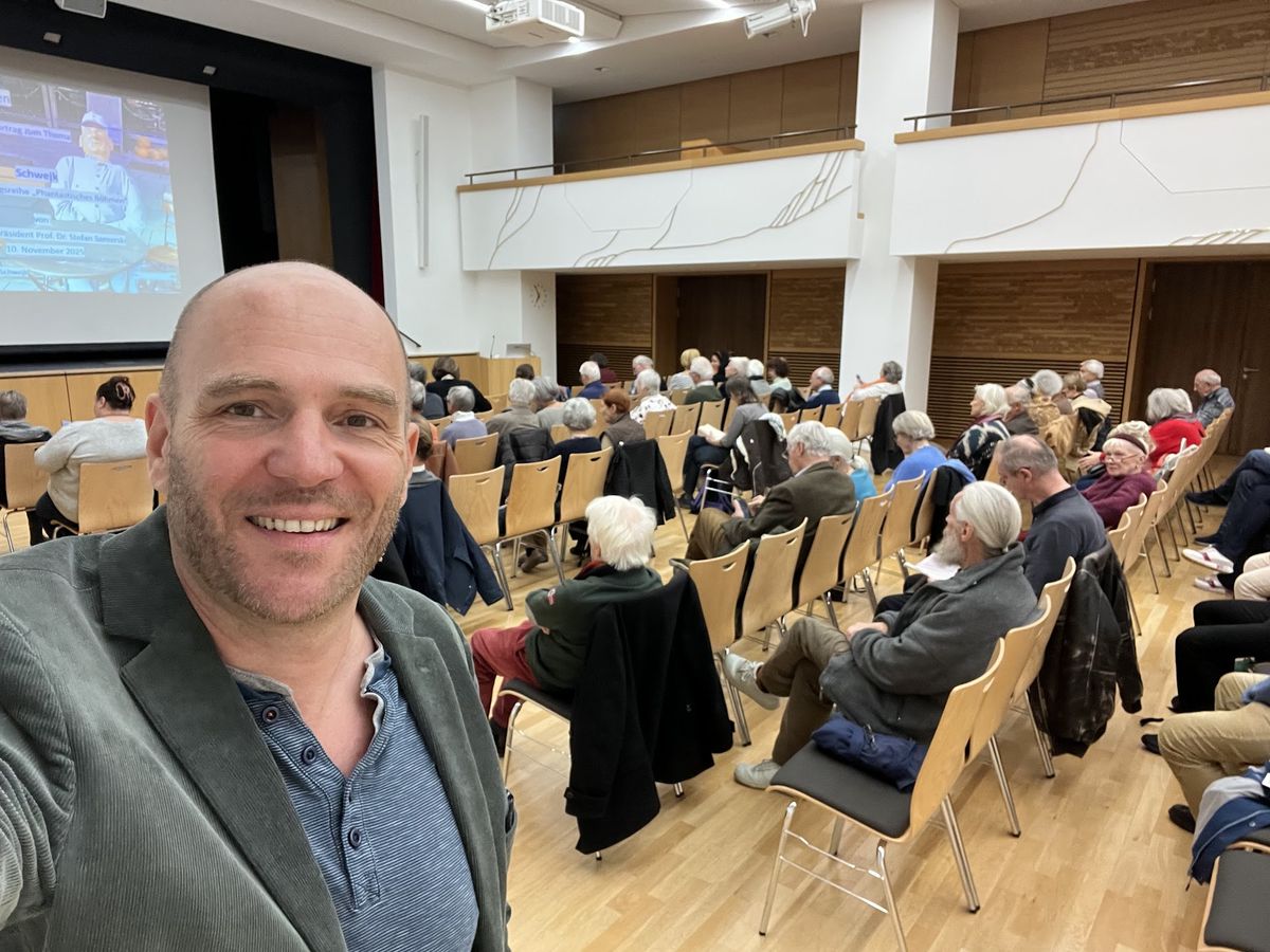 Sál Adalberta Stiftera v Sudetoněmeckém domě v Mnichově byl zaplněn do posledního místa. Atmosféra byla napjatá a veselá zároveň, když Prof. Samerski zahájil svůj výklad humorem jako ventilem pro absurditu světa, tou absurditou, která v Švejkovi dostává nezaměnitelnou tvář.
