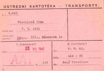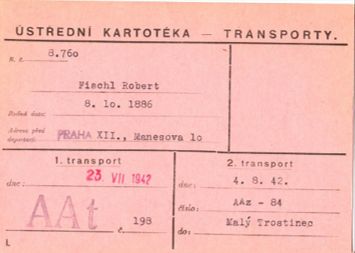 Dne 4. srpna 1942 nastupují Robert a Irma Fischlovi s dcerou Margot do transportu AAz „na východ“. Oficiálně prý kvůli „vystěhování“ a „pracovnímu nasazení“. Jako mnozí jiní věří, že jde o přesídlení, o pracovní tábor, o nějakou formu přežití. Fatální klam pečlivě živený pachateli, kteří požadovali i dopisy z „nových domovů“, aby udrželi příbuzné ve falešném bezpečí.