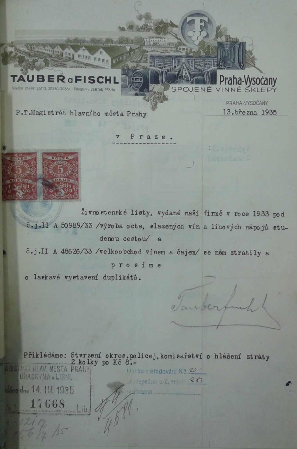 Uprostřed hospodářské krize v roce 1933 dosahuje Robert Fischl mimořádného úspěchu, spojuje svůj podnik s konkurencí a zakládá s panem Tauberem společnost Tauber & Fischl, která se brzy stává důležitým hráčem v československém vinařském obchodu.
