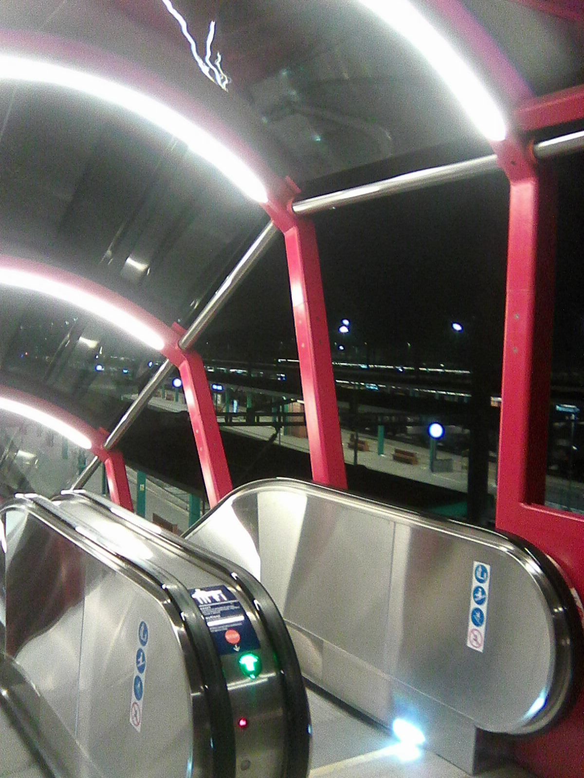 Pokud si navíc na některém z nástupišť (např. č. 4) na chvíli stoupnete k dolní části eskalátorů a zaposloucháte se do jejich chodu, uslyšíte hlasitý, kvílivý skoro až strašidelný zvuk. A nemusíte ani stát poblíž – zřetelné vrzání nedávno instalovaných eskalátorů je slyšet na 15 až 20 metrů. Jasně to vypovídá o tom, že nové eskalátory nedostatečně ochráněné před vlhkostí a rozmary počasí již teď nejsou v optimálním stavu.