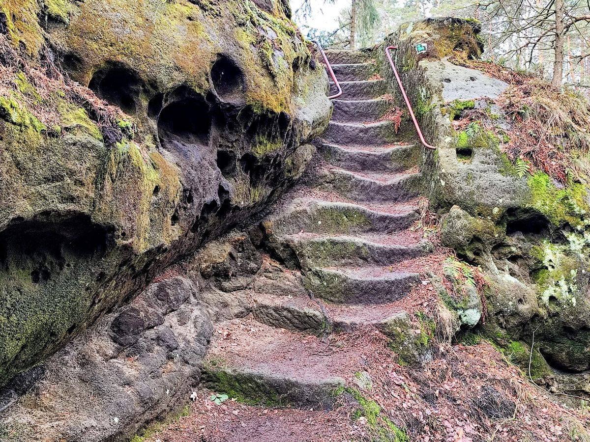 Zapomenutý skalní hrad. Cesta na vrchol vede úzkými tesanými schody, které prověří vaši fyzičku i odvahu