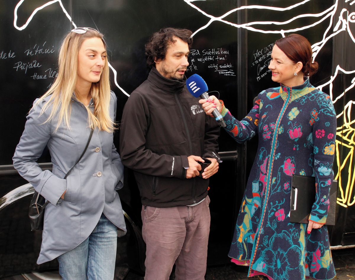Tady ještě dělá Jolana Voldánová rozhovor s Pavlem Liškou a Bárou Polákovou.
