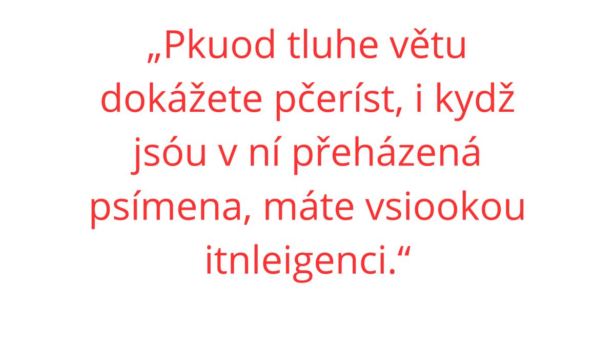 „Pkuod tluhe větu dokážete pčeríst, i kydž jsóu v ní přeházená psímena, máte vsiookou itnleigenci.“