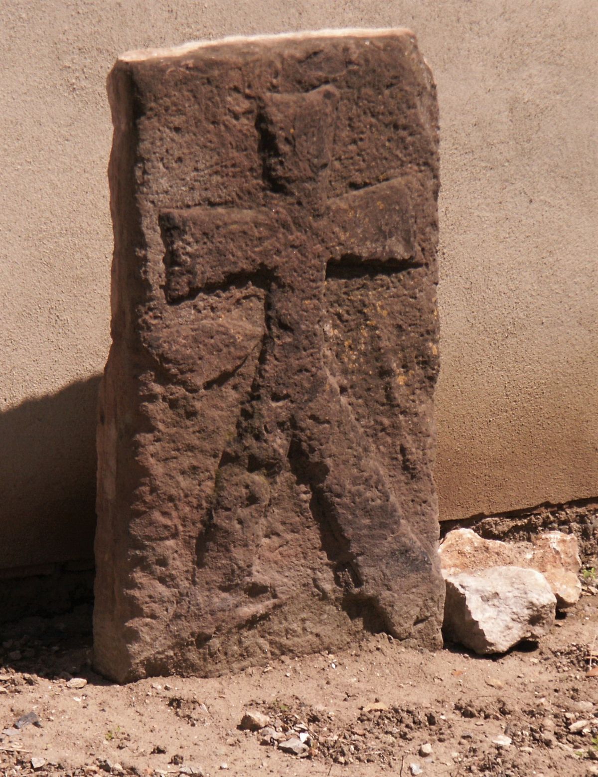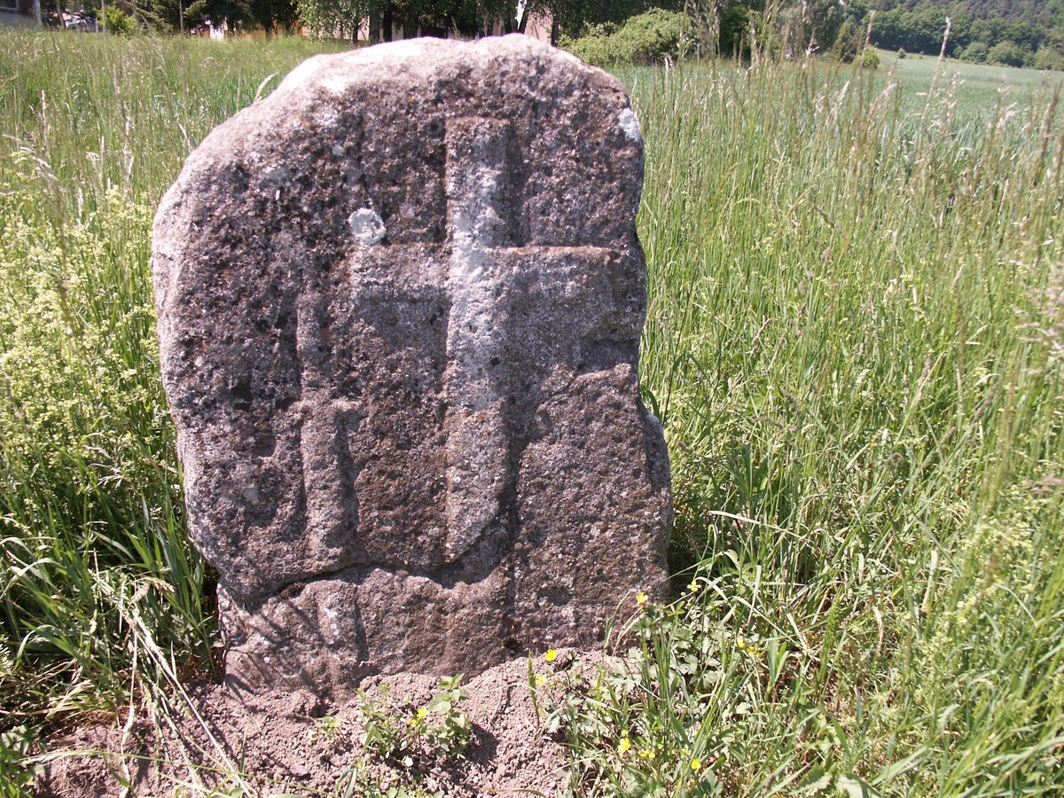 O tom prvním, byl zazděný v Klášterské ulici v tarase naproti čp. 355 a dnes je přemístěný kousek pod silnici, se však vypráví i něco jiného. Prý měla v těchto místech, ne tak daleko od dnešního vlakového nádraží, stávat kdysi komenda johanitů. Když se vracel jeden jejich člen z křížové výpravy do Svaté země, měl být právě tady, jen pár kroků od tábora, zabit. Kámen je vysoký 90 a široký 62 cm. Většinu jeho plochy pokrývá maltézský kříž s nezvykle rozštěpenou nohou. Svým zpracováním napovídá, že časy udatných křižáků nemůže pamatovat a je velice pravděpodobné, že tu byl zbudován na paměť události o pár století mladší. Hned o ní uslyšíte.