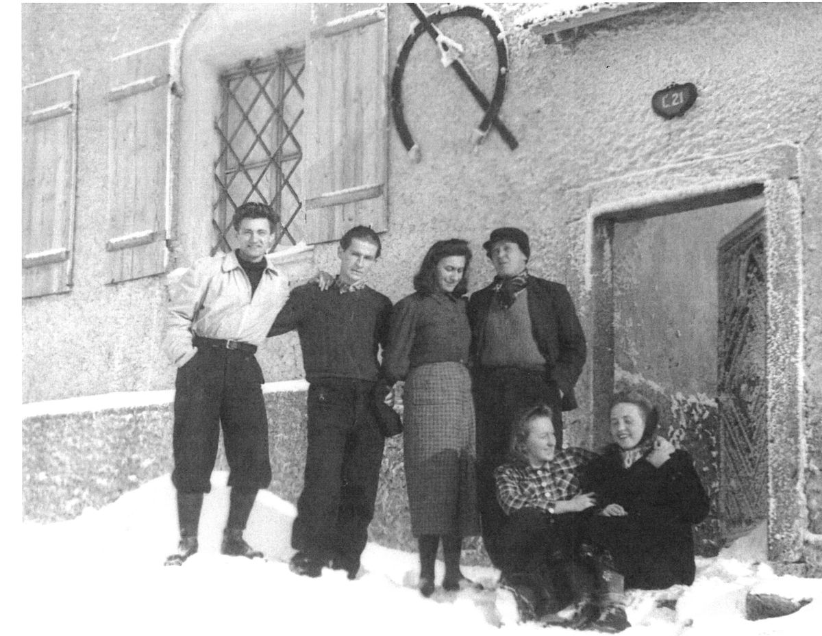Cyril Musil s přáteli v roce 1940, s manželkou Růženkou stojí vpravo