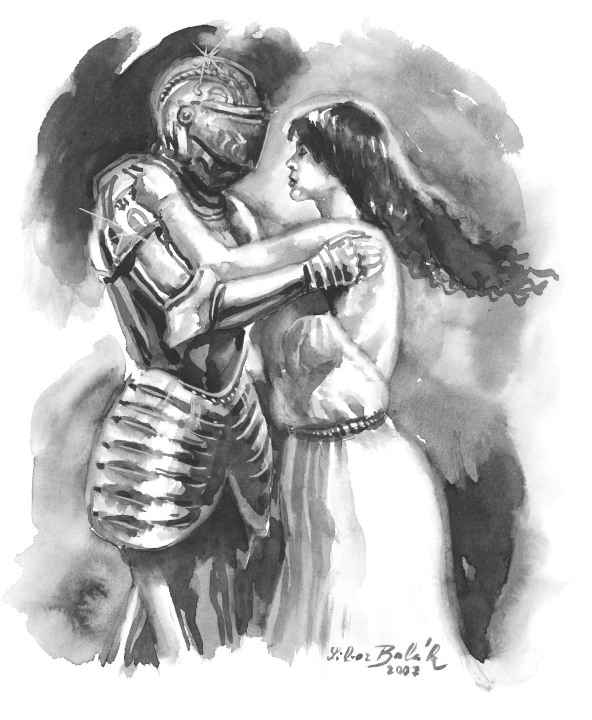 Hana se mu nemůže vytrhnout, už jsou v jednom kole, hudba stále zrychluje a ona se vznáší jako na křídlech. Proč však rytíř mlčí a klopí oči? To už ale nohy tempu nemohou stačit, celá okolní nádhera se slévá v jeden pestrobarevný pás a v nejdivočejším reji ji rytíř pouští z náručí. Hudba zmlkne, Hana vrávorá a opírá se o chladný mramor. Ani nevidí, jak její tanečník mizí zpět v rakvi. Slyší však příšerný rachot padajícího víka.