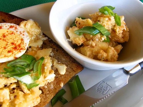 - V toustovači opeču topinky, potřu je česnekem, na každou z topinek dám porci směsi a posypu sýrem.